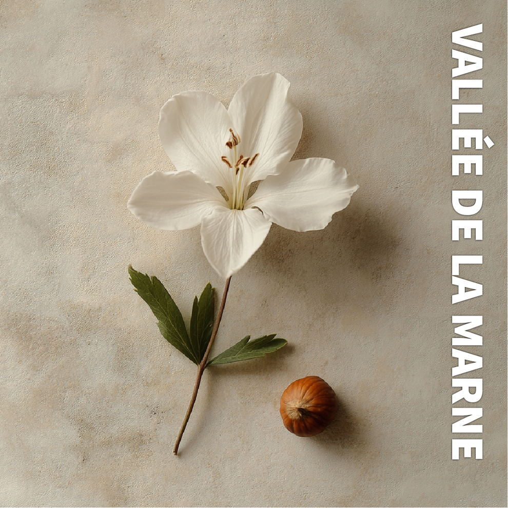 Cette fragrance s’inspire du caractère généreux du pinot meunier, cépage emblématique de la Vallée de la Marne. Elle dévoile des notes douces de bergamote et de noisette, pour une ambiance chaleureuse, enveloppante et accueillante.