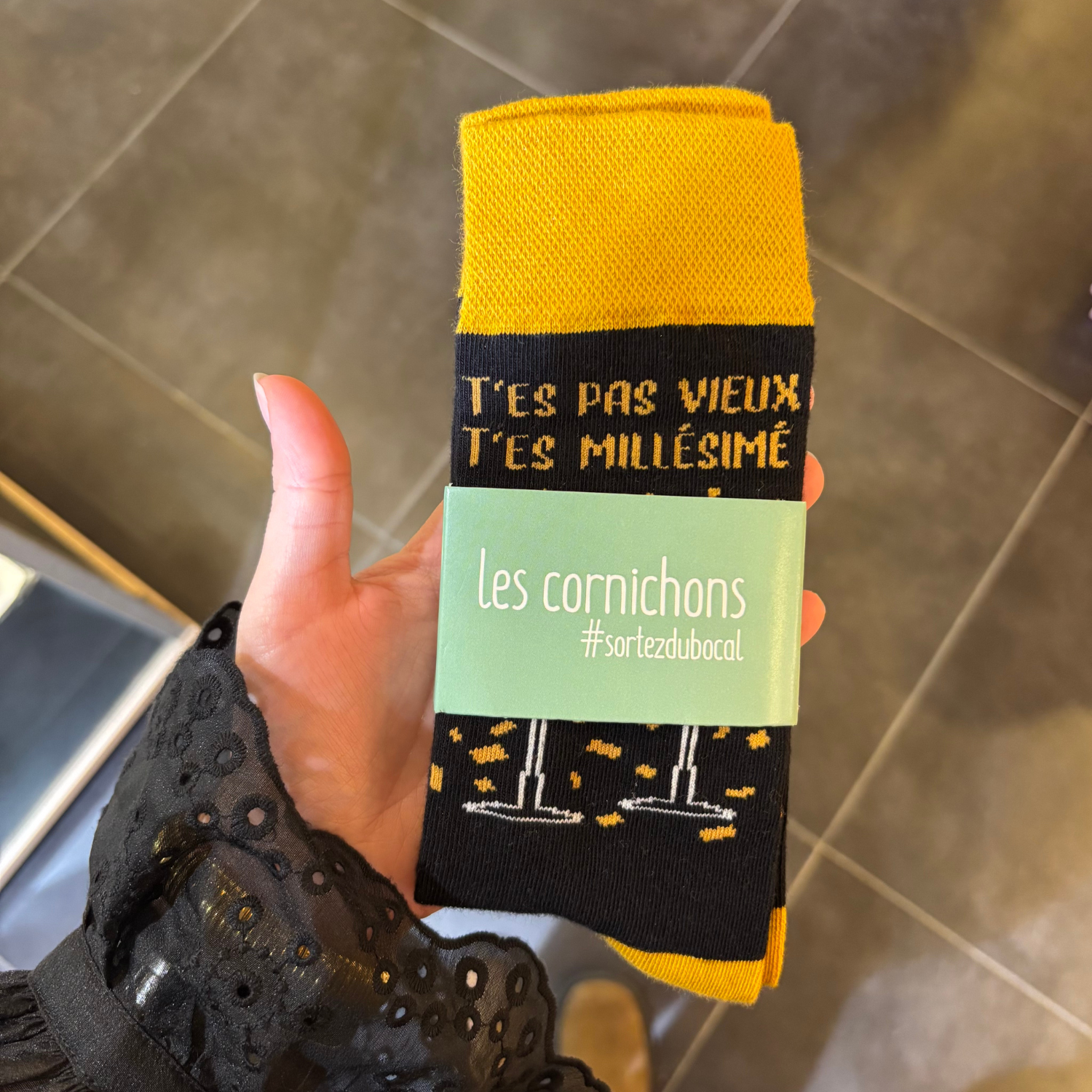 Pour tous les hommes millésimés avec fierté ! Ces chaussettes sobres et pleines d’esprit sont parfaites pour affirmer son âge avec humour.