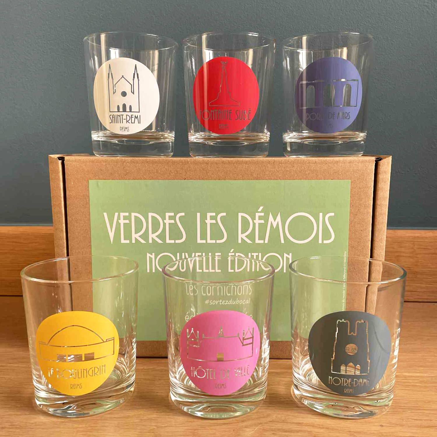 Édités en série limitée, ces verres décorés en France et créés par Les Cornichons à Reims apportent une touche authentique et contemporaine à chaque usage. Leur sérigraphie soignée souligne avec finesse l’esprit rémois.
